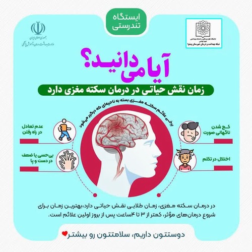 در درمان سکته مغزی، زمان طلایی نقش حیاتی دارد، بهترین زمان برای شروع درمانهای مؤثر، کمتر از ۳ تا ۴ ساعت پس از بروز اولین علائم است.