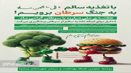 با تغذیه سالم به جنگ سرطان برویم!  ۴ تا ۱۰ بهمن ماه سال ۱۴۰۴ هفته ملی مبارزه با سرطان