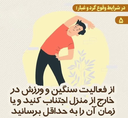 توصیه‌های ۱۰ گانه‌ای که لازم است در شرایط وقوع پدیده گرد و غبار و کاهش کیفیت هوا نسبت به رعایت آن‌ها اقدام کرد