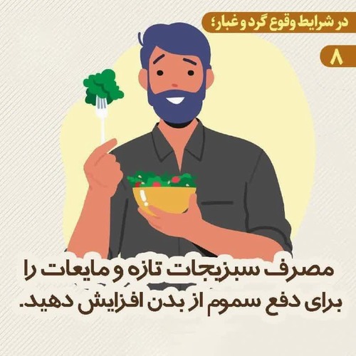 توصیه‌های ۱۰ گانه‌ای که لازم است در شرایط وقوع پدیده گرد و غبار و کاهش کیفیت هوا نسبت به رعایت آن‌ها اقدام کرد.