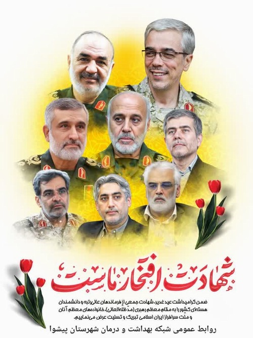 ضمن گرامیداشت عید سعید غدیر، شهادت جمعی از؛ فرماندهان عالیرتبه و دانشمندان هستهای کشور و مردم عزیزمان را به مقام معظم رهبری (مدّ ظلّهالعالی)، خانوادههای معظم آنان و ملّت سرافراز ایران اسلامی تبریک و تسلیت عرض مینماییم.