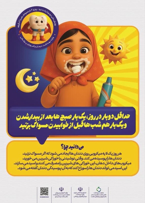 «دو دوتا یادت نره! روزی دو بار مسواک، هر بار دو دقیقه»