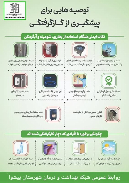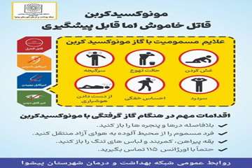 اطلاعیه روابط عمومی شبکه بهداشت و درمان شهرستان پیشوا | پیشگیری از مسمومیت با گاز منوکسیدکربن (قاتل خاموش)