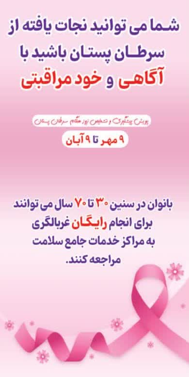9 مهر تا 9 آبان، پویش پیشگیری و تشخیص زودهنگام سرطان پستان