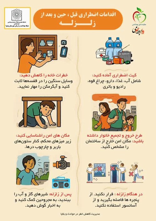 اقدامات اضطراری قبل، حین و بعد از زلزله: