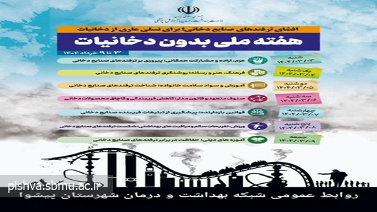 ۳ لغایت ۹ خرداد ماه؛ هفته ملّی بدون دخانیات گرامی باد.