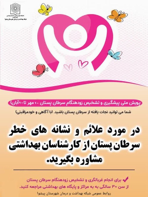 برای انجام غربالگری و تشخیص زود هنگام سرطان پستان از سن ۳۰ سالگی به مراکز و پایگاه های بهداشتی مراجعه کنید.