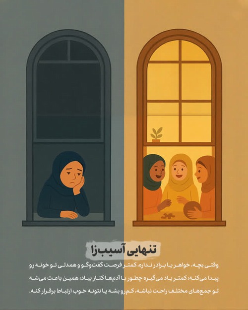 وقتی بچه، خواهر یا برادر نداره، کمتر فرصت گفت‌وگو و همدلی تو خونه رو پیدا می‌کنه؛ کمتر یاد می‌گیره چطور با آدم‌ها کنار بیاد؛ همین باعث می‌شه تو جمع‌های مختلف راحت نباشه، کم‌رو بشه یا نتونه خوب ارتباط برقرار کنه.
