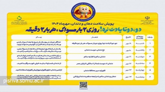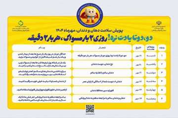روزشمار هفته پویش ملی سلامت دهان و دندان با شعار: «دو دوتا یادت نره! روزی دو بار مسواک، هر بار دو دقیقه»