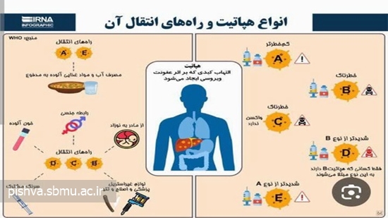 هفته اطلاع رسانی هپاتیت (۴لغایت ۱۱مرداد) گرامی باد/ در تصویر انواع هپاتیت و راه های انتقال آن ذکر شده است.