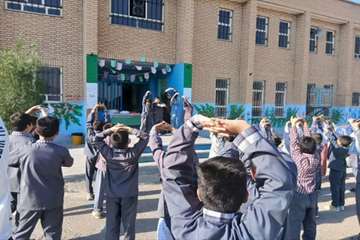 ورزش صبحگاهی و توزیع صبحانه سالم در مدرسه امام صادق (ع) روستای قلعهنو