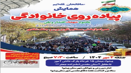 اداره ورزش وجوانان شهرستان پیشوا و بسیج ورزشکاران برگزار می کند / همایش بزرگ پیاده روی خانوادگی گرامیداشت هفته دفاع مقدس
