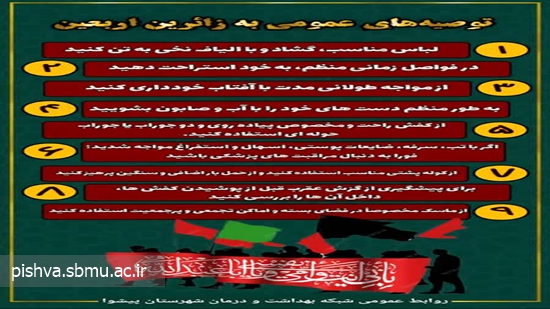 ✅ توصیه های عمومی به زائرین اربعین به منظور پیشگیری از بیماریها و گرمازدگی